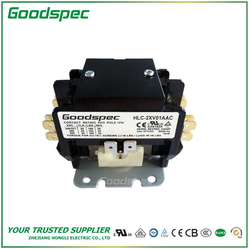HLC-2XV01AAC(2P/25A/24VAC)空调接触器(以下简称接触器),主要适用于50Hz或60Hz、在AC-8a使用类别额定工作电压为240V或277V时额定电流至25A电路中,适用于起动和控制单相交流电动机(压缩机)及其它单相负载。主要用于家用电器行业,特别在空调行业中。可以替代同类国外进口产品和国内传统产品,符合IEC60947·4,UL508及GB14048.4等标准.